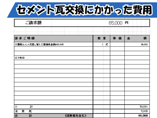 セメント瓦の差し替え工事 請求内訳